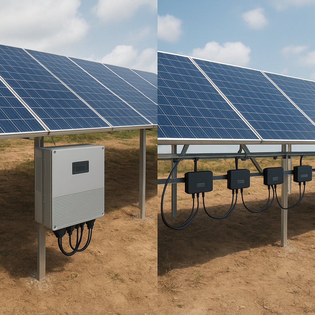 - Bezpieczeństwo: wyższe napięcie DC w inwerterach centralnych kontra niskie napięcie w mikroinwerterach.